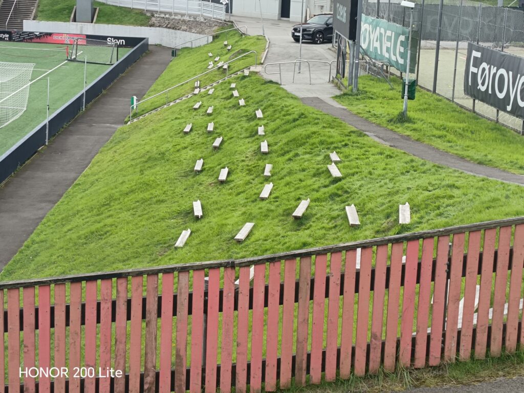 . После тога палимо на стадион Торшавина. То им ваљда и национални. Поред је још један на коме играју два клуба и један тренинг. На стадиону све капије отворене, лопте на центру. Наравно играмо фудбал и за дивно чудо никоме не сметамо (овде би се појавио неки Мута да нас јути са косачицом). Обилазимо и други стадион са аутентичном трибином и дрвеним клупицама. Западна трибина подељена на два дела. Један клуб, просторије, трибина и после ливада па трибина другог клуба. Оно ливада ратна зона. Источна трибина је оно градска за неутралне. Обилазимо шоп на стадиону Торшавина и у том кафеу налазимо најјефтиније пиво.